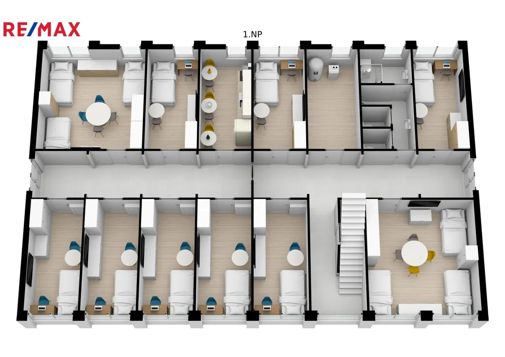Na pozemku se nachází dvoupatrová budova ubytovny, o zastavěné ploše 237 m2, která prošla v roce 2016 kompletní rekonstrukcí, zahrnující nová okna, dveře, zateplení, podlahy. Celkem obsahuje 23 zařízených pokojů, dvě kuchyně, sociální zařízení, atd.