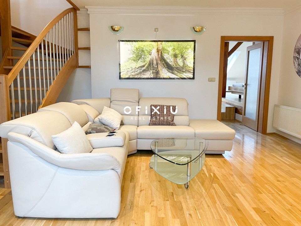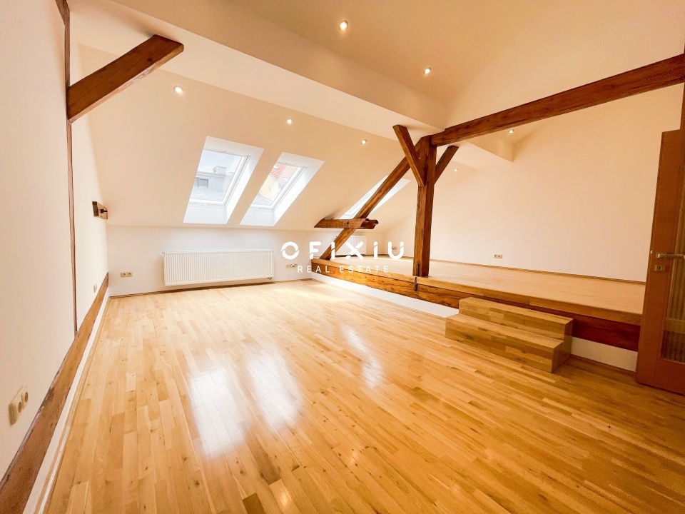 Nabízíme k pronájmu prostorný mezonetový byt s dvěma terasami, který se nachází v pátém a šestém patře historické budově v centru Brna, na ulici Jaselská. Celková plocha je 296 m².