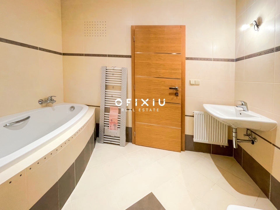 Byt se nachází v pátém patře a jeho celková plocha je 121 m². Skládá se z prostorné chodby, dvou ložnic, šatny, obývacího pokoje s kuchyňským koutem a koupelny. Kuchyňská linka je vybavena troubou, varnou deskou, myčkou a lednicí s mrazákem.