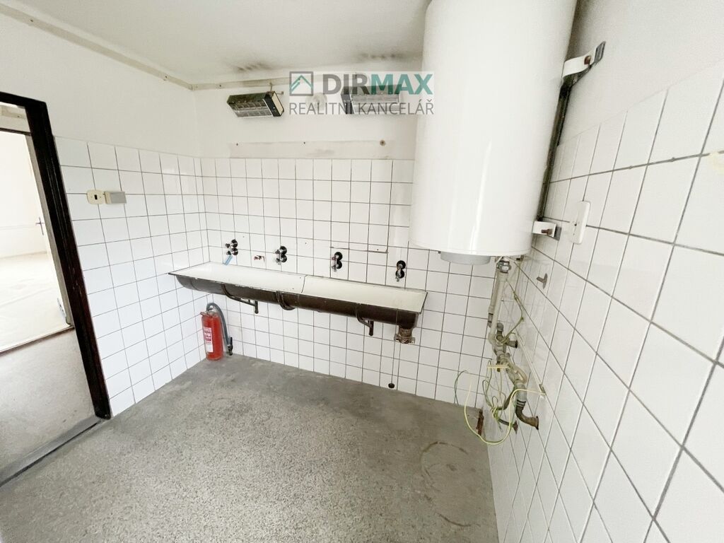 Při vjezdu je příjezdová brána a v pravé části pozemku je dvojpatrová, kompletně podsklepená vila vhodná k bydlení a trvalému obývání s číslem popisným! Může také sloužit k účelu centrály a kancelářskému využití, bydlení. Zejména kancelářské využití bylo i do současnosti. V prvním patře jsou 3 místnosti, samostatná koupelna a oddělená toaleta. Kompletní osvětlení jednotlivých místností. Po schodišti se pak jde do druhého patra, kde jsou prakticky stejné dispozice, tedy tři místnosti a vlastní sociální zázemí. Vila je kompletně podsklepená - velké sklepy, v některých částech i větší členění. Všechny okna stavby jsou plastová, vila je zděná. Sítě tady jsou, napojení na vodu i kanalizaci a vlastní tepelné čerpadlo, které slouží na vytápění a teplou vodu. Dále jsou na pozemku 4 větší garáže a sklady. Protější budova je patrová a prostory jsou natolik velké, že tady může stát i větší zemědělská nebo stavební technika, traktory atd. Dále je tady menší domek, budova, fungující jako technické zázemí. Komunikace i v rámci areálu je asfaltová. Na pozemek navazuje vlastní zahrada. Okolí je v kombinaci obytné zástavby s lehčí výrobou.