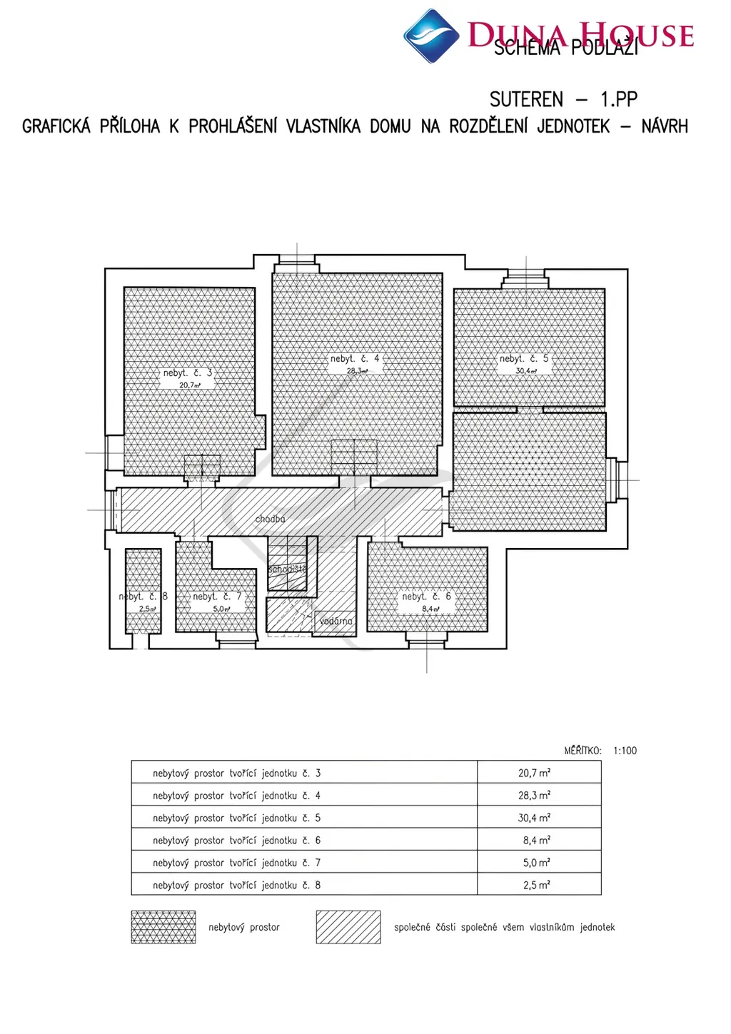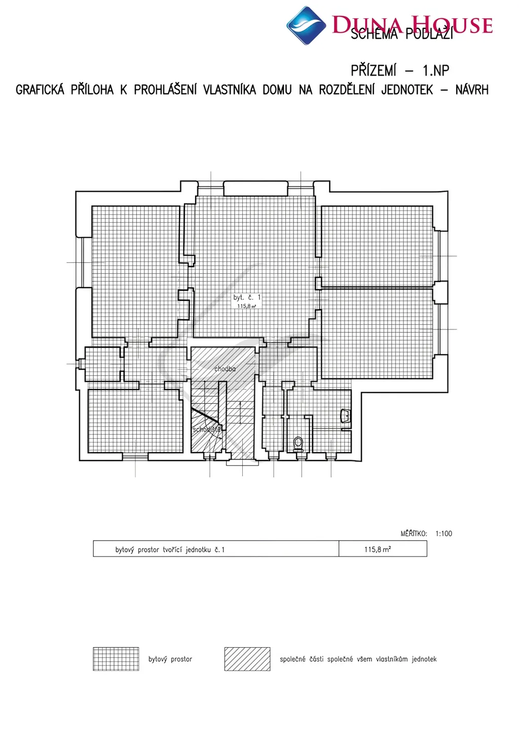 Obsahuje dva samostatné byty 4+1 o rozloze každý 130 m² + suterén.