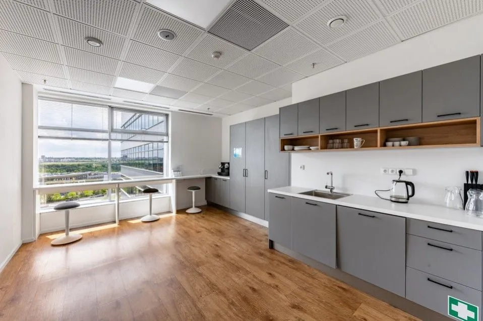 Služby a vybavení: recepce, kolárna se sprchami, parkování i pro návštěvníky, nonstop bezpečnostní služba, nízkoenergetické LED osvětlení, optický kabel, dobíjecí stanice pro elektromobily, myčka v podzemní garáži, otevíratelná okna, vysokorychlostní výtahy a možnost regulace teploty v jednotlivých zónách. Prostory je možné flexibilně uspořádat dle představ klienta.