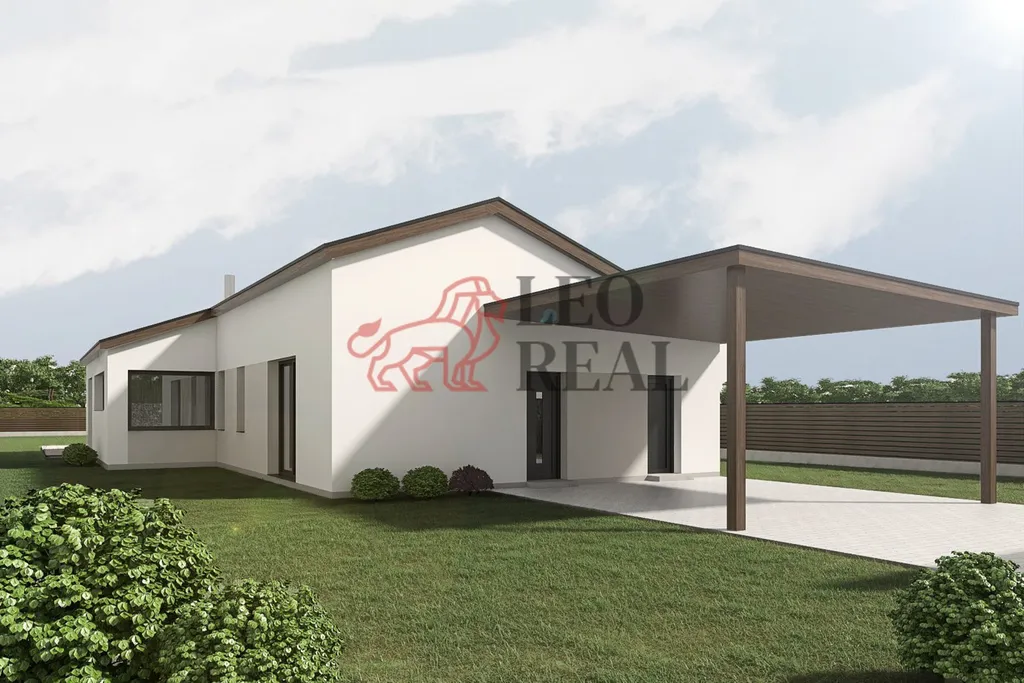 Dům možno doplnit terasou, pergolou, garážovým stáním nebo garáží.