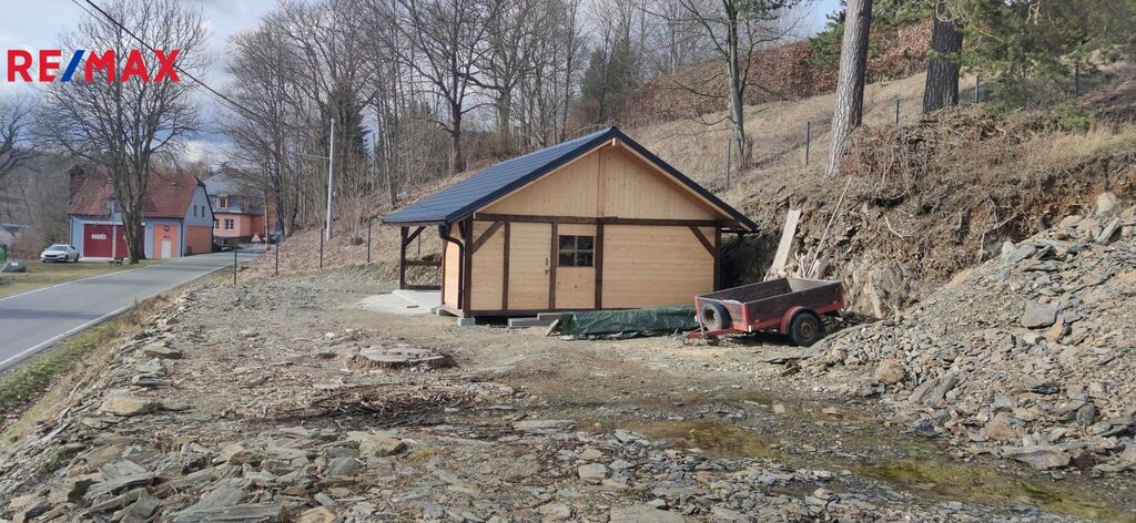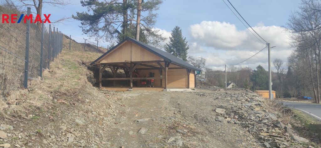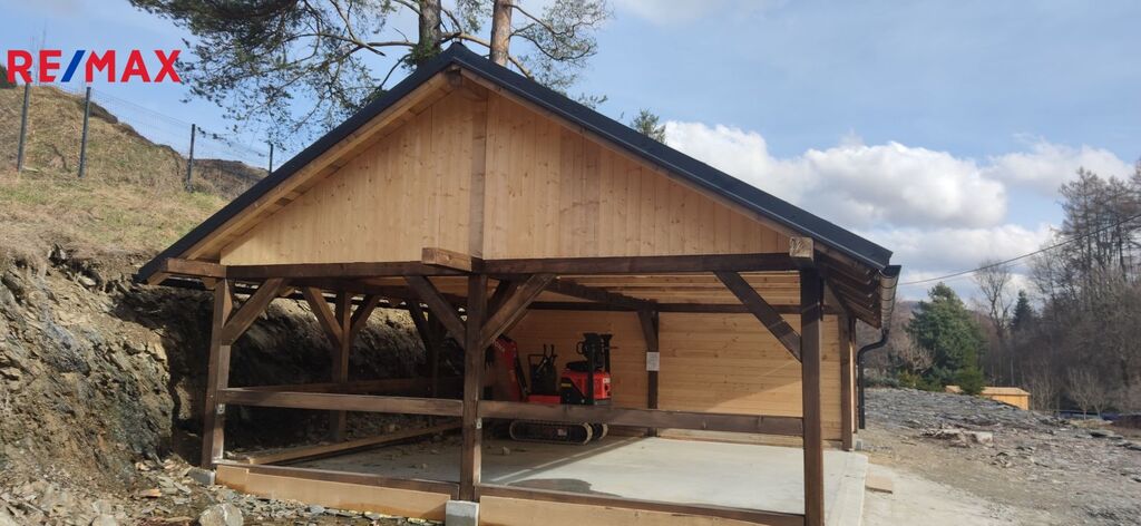 Na pozemku jsou provedeny rozsáhlé terénní úpravy a je připraven ke stavbě. Je zde vybudováno zastřešené parkovací stání o výměře 60 m2 pro dvě osobní auta se zázemím, stojící na betonové základové desce. Přípojka elektřiny na pozemku. V blízkosti se nachází obecní vodovod, plynová přípojka a kanalizace. Pozemek je částečně oplocen.