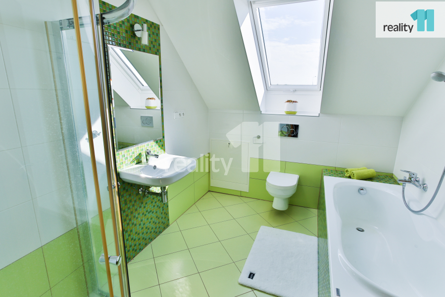 - Dům je vytápěn plynovým centrálním teplovodním systémem se soustavou topných těles a podlahového vytápění v obou podlažích, v koupelnách najdete elektrické žebříky.