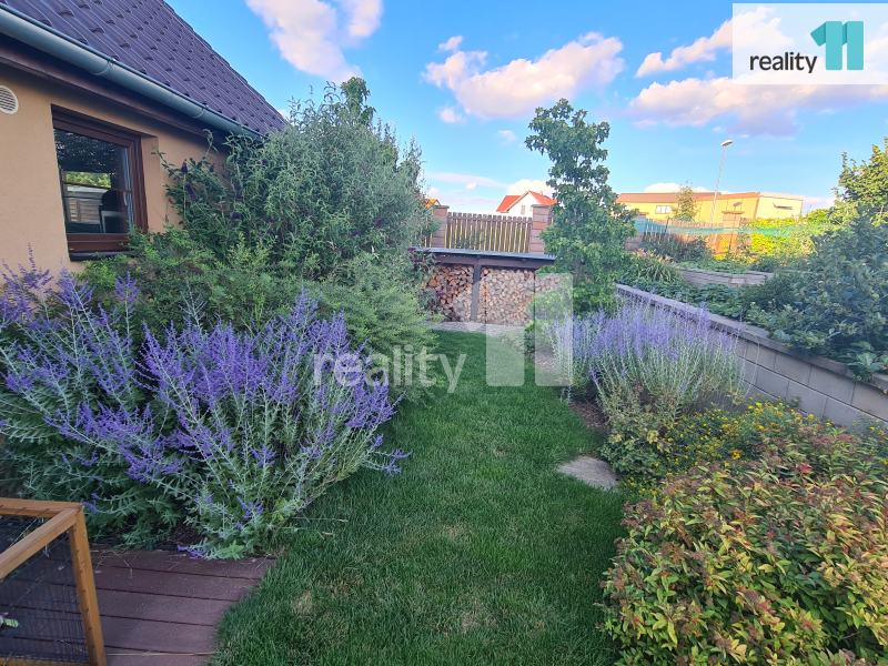 Zejména děti ocení velký prostor pro hraní a zabudovanou klouzačku. Součástí pozemku je i zahradní domek nabízející další úložný prostor pro zahradní náčiní.