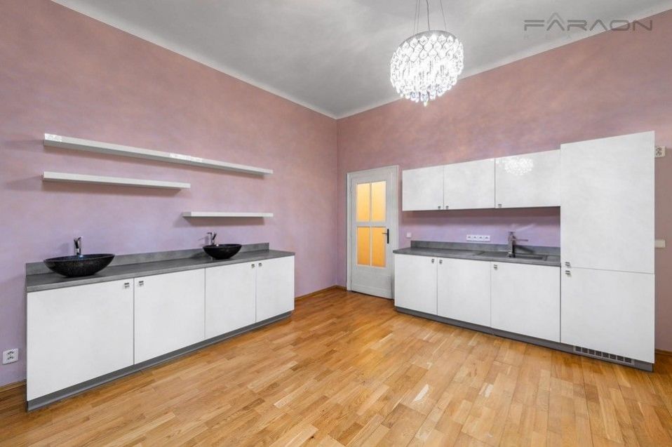 Nadstandardní stylový byt s menším balkónem, o dispozici 3+kk a celkové ploše 136 m2, umístěný ve 3.NP reprezentativního činžovního domu s výtahem, na velice prestižní adrese, v samém centru Prahy, jen pár kroků od Václavského a Senovážného náměstí.