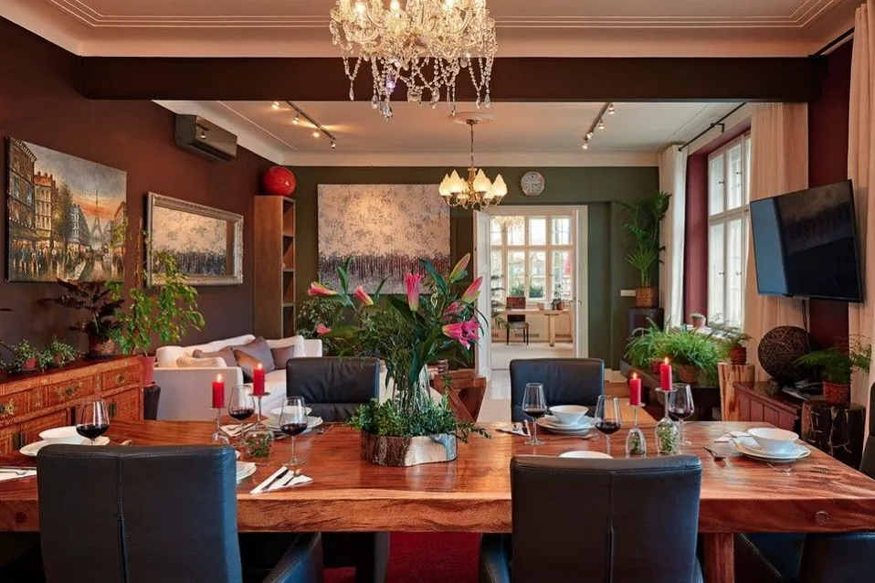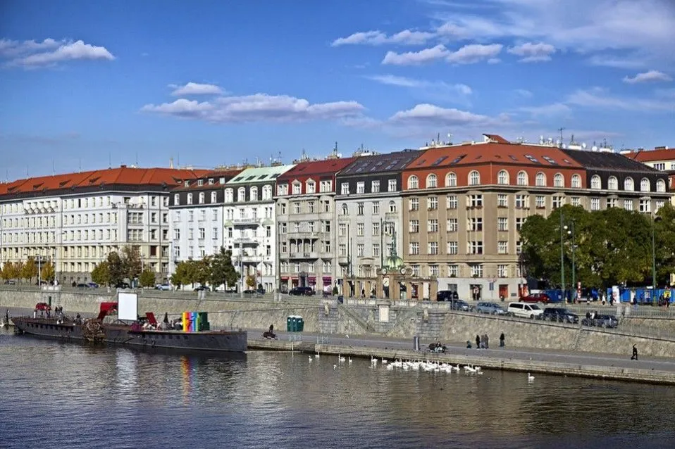 Zrekonstruovaný, kompletně a luxusně zařízený byt (177 m2) s neopakovatelnými výhledy na Vltavu a Pražský hrad v 1. patře kompletně zrekonstruovaného činžovního domu s výtahem a mnoha zachovanými původními prvky na nábřeží Vltavy.