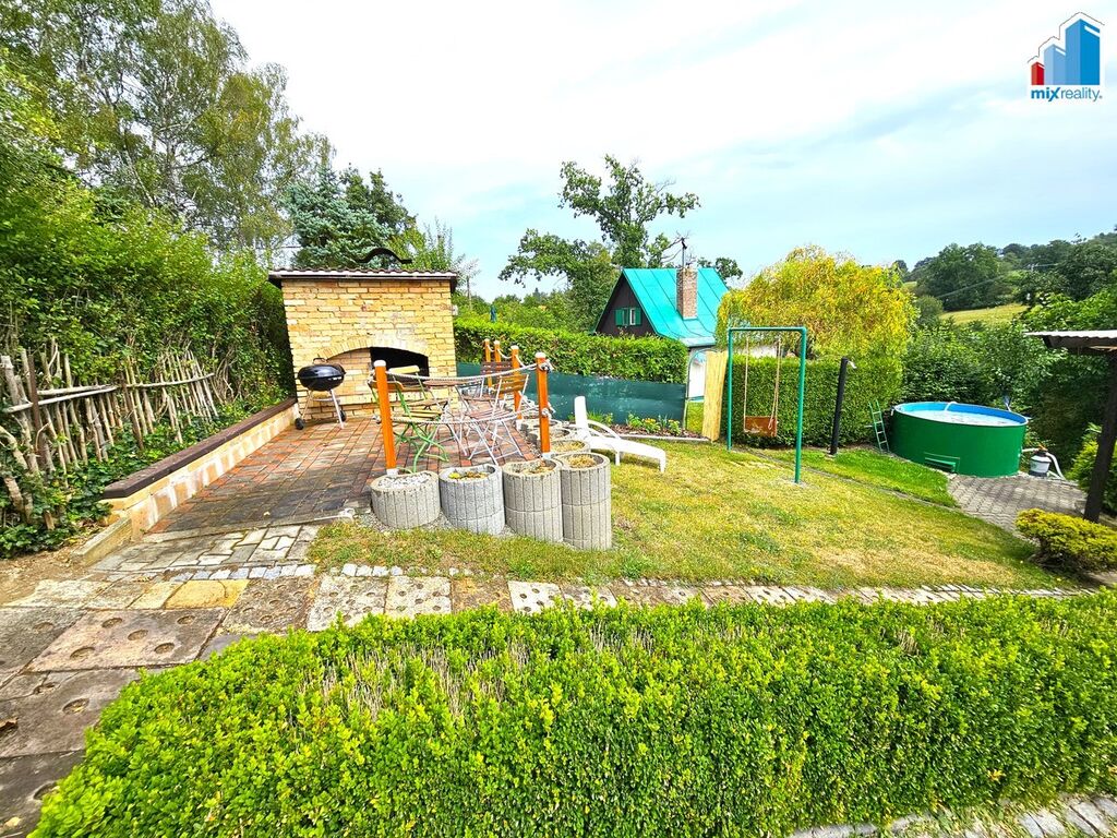 Na pozemku se nachází venkovní posezení s udírnou a grilem, pergola, zahrádka, bazén a parkovací stání.