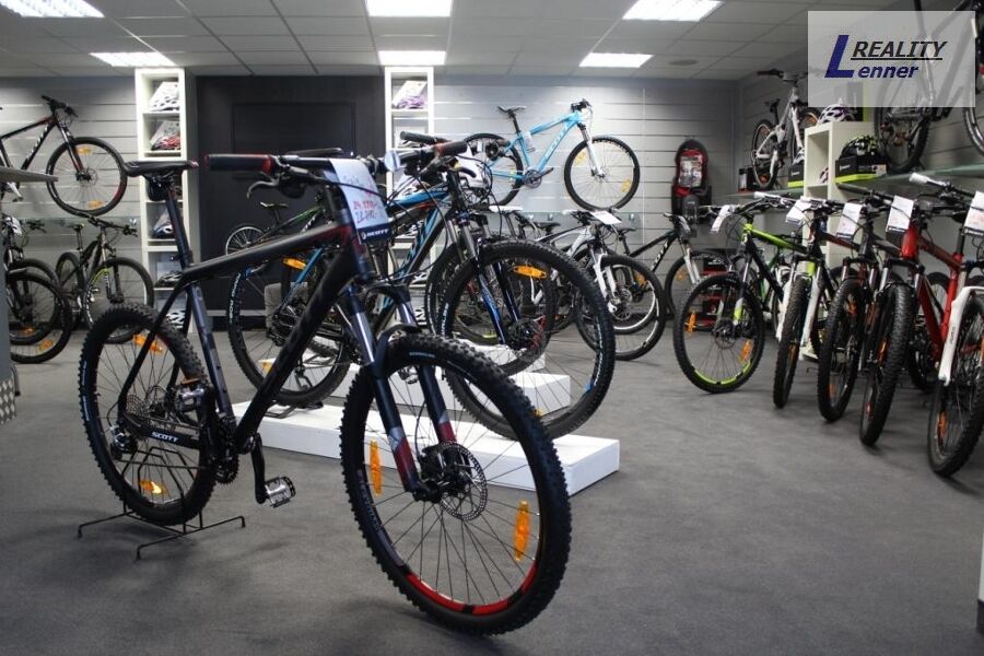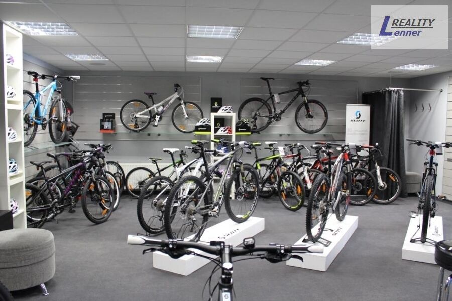 V 1. NP je prodejní plocha lyží a kol cca 100 m2 vč. toalety, dále pak kancelář 41 m2 (byt) vč. kuchyňky (bez koupelny) s toaletou vč. umyvadla.