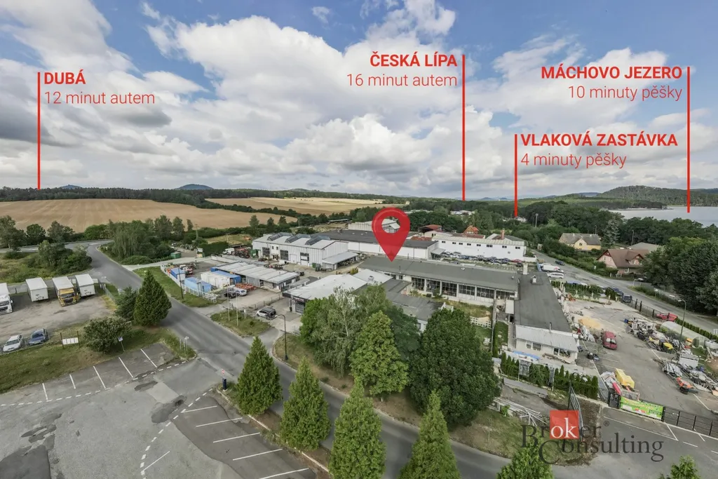 Komplex se nachází na výborném místě u hlavní komunikace mezi Českou Lípou (cca 15 minut) a Mladou Boleslaví (cca 20 minut). Kromě skvělé dopravní dostupnosti se jedná o velmi navštěvovanou turistickou lokalitu s velkou frekventovaností jen pár minut chůze od břehu Máchova jezera.
