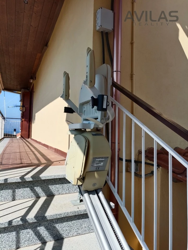 Z tohoto dvora vychází schodiště (vybavené schodišťovým výtahem pro invalidy), které vede do prvního patra, kde se nachází tento komfortní byt s uzavřenou verandou.