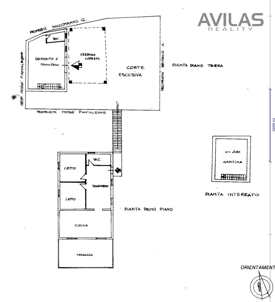 Budova, kde se byt nachází, má dvě nadzemní podlaží se dvěma samostatnými byty, jeden v přízemí a jeden v prvním patře. Vlastníci těchto jednotek, mají společnou přístupovou třídu ohraničenou bránou, majitel přízemí vchází do prvních šesti metrů s vlastním exkluzivním nádvořím, zatímco vstup nabízené nemovitosti, pokračuje stejnou společnou třídou, vchází na své exkluzivní nádvoří/zahradu, kde je k dispozici místo pro parkování a různá příslušenství, včetně otevřené kůlny a přístavby v přízemí.