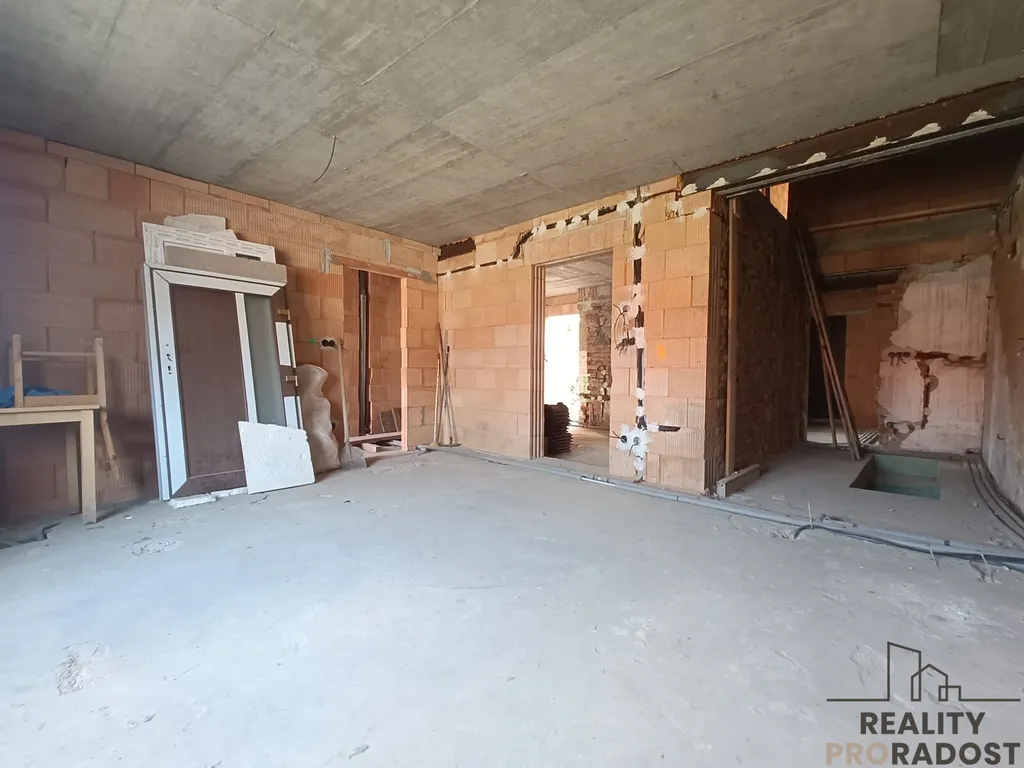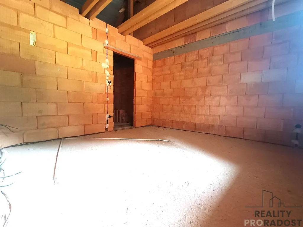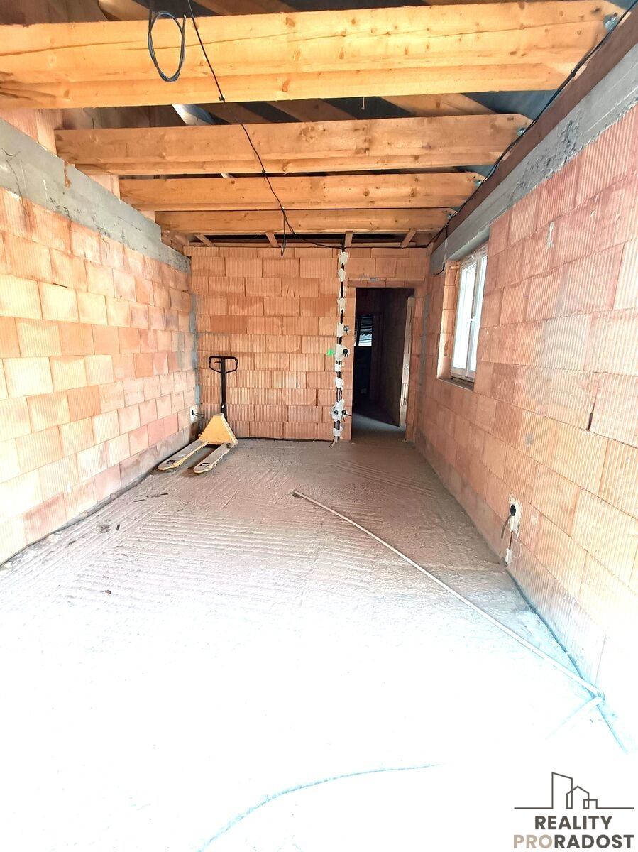 - elektroinstalace, rozvody vody a rozvody odpadů, příprava podlahového topení - elektro či voda, kompletní nová střecha - vazba a krytina z pálených tašek, plastová okna - trojskla, plastové vstupní dveře stejně jako vrata do garáže(sklepa) zakoupeny a uskladněny k instalaci na závěr dostavby.