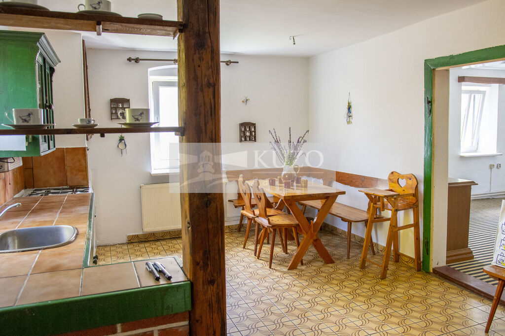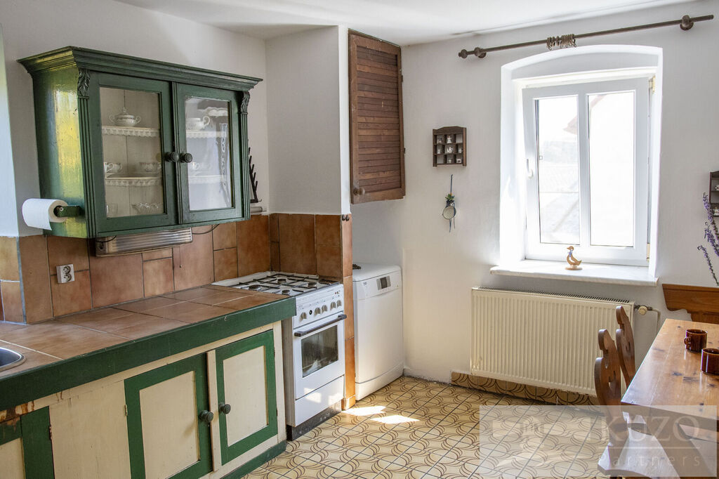Interiér domu nabízí velkou kuchyni, kde se pohodlně uvaří pro celou rodinu, a v obývacím pokoji můžete ocenit kachlová kamna, která vytvářejí útulnou atmosféru. Celkem se zde nachází 5 ložnic, což poskytuje dostatek prostoru pro celou rodinu. Dům obsahuje 2 samostatné toalety a 1 koupelnu, což usnadňuje každodenní rutinu s dětmi.