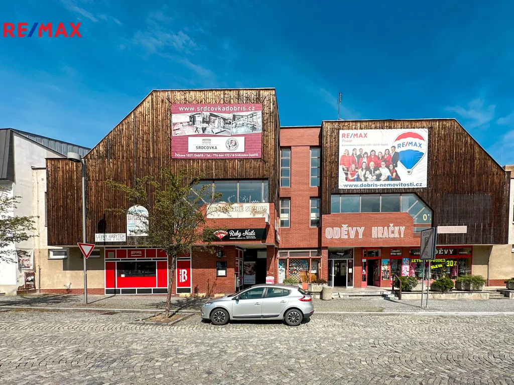 Nabízím k prodeji komerční prostory, skládající se ze tří samostatných jednotek, které celkově tvoří 1/2 prostorného obchodního objektu Černá Labuť na Mírovém náměstí v obci Dobříš, okres Příbram.
