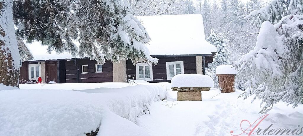Kompletně zařízená chalupa překrásným, starodávným nábytkem je umístěna na samotě u lesa v Komorní Lhotce č.e 290, s vlastní příjezdovou lesní cestou a čeká právě na Vás. Tato zajímavá nemovitost nabízí oázu soukromí a klidu a může být využita díky svému dispozičnímu řešení dvěma rodinami, jelikož má dvě samostatné jizby s kuchyňským koutem vybavené plně funkčními kachlovými kamny k vaření. K vytápění je v jedné z jizeb funkční otevřený krb a v druhé krbová kamna. Stavba prošla láskyplnou péčí, díky které se může pochlubit stavem velmi dobrým. V přízemí je společná předsíň, společná koupelna se sprchou a eko-toaletou a komorou. Každá část má v podkroví prostornou otevřenou ložnici s několika postelemi. K chalupě náleží hospodářská budova, která slouží jako dílna a pro úschovu dřeva na zimní období a samostatně stojící sklep. Chalupa je poslední stavbou u lesa a poskytuje tak naprosto fantastické zázemí. Jedná se o naprosto jedinečnou nabídku, která se nebude opakovat.