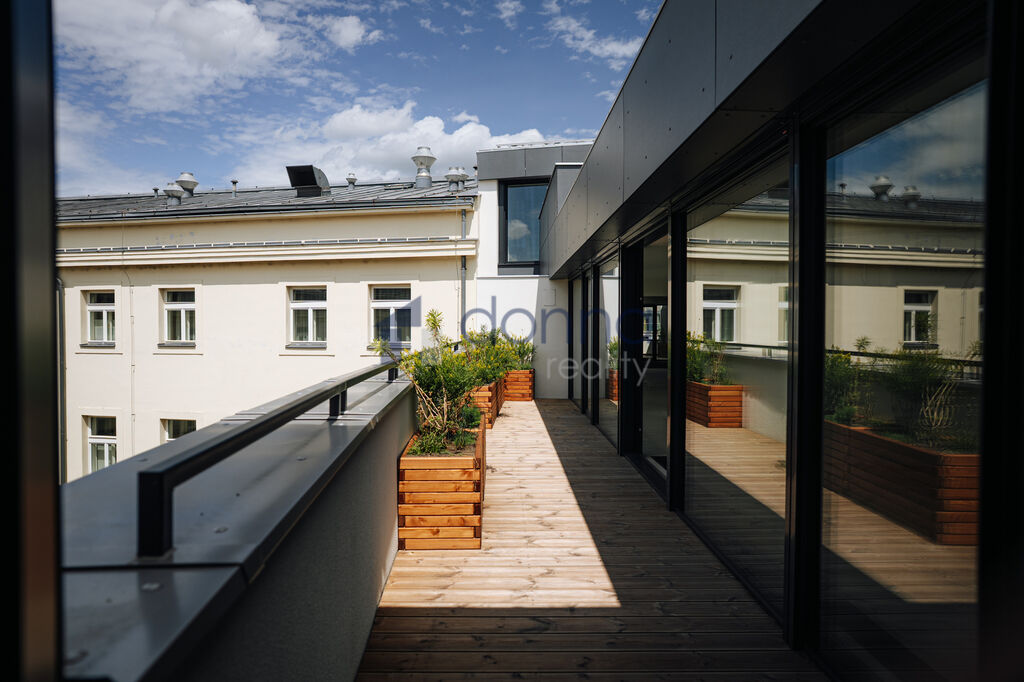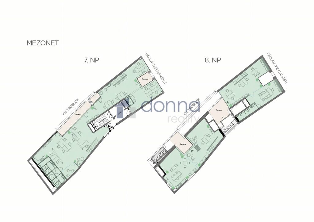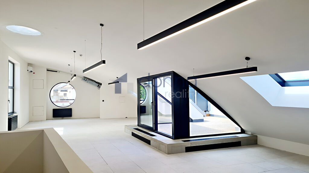 Nabízíme pronájem jedinečných mezonetových prostor o rozloze 511 m2 se čtyřmi terasami, v samém srdci české metropole, na lukrativní adrese v horní části Václavského náměstí.