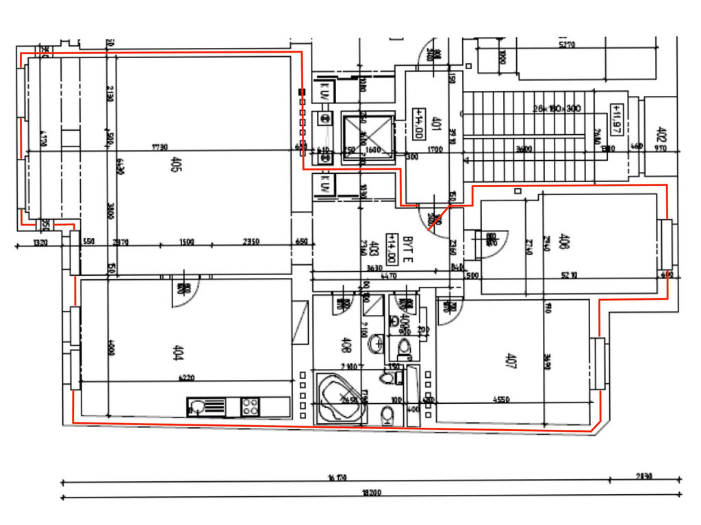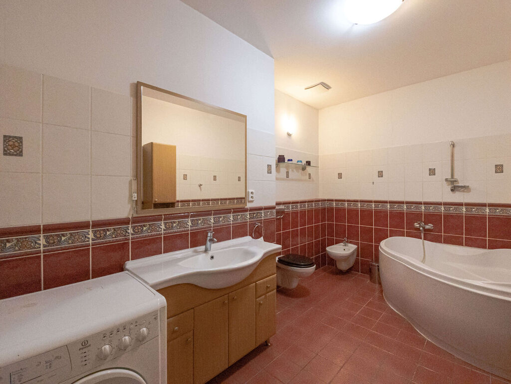 • Koupelna (9,4 m²) se sprchovým koutem a pračkou.