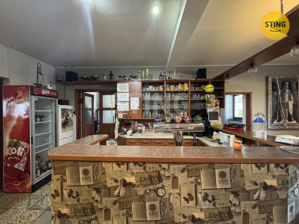 Komerční část v přízemí slouží jako zavedená hospoda s kapacitou cca 35 osob. Součástí je také velký sál pro společenské akce (min. 40 osob), menší kuchyně pro přípravu jídel, oddělená sociální zařízení, a skladové prostory. Objekt je plně funkční a umožňuje plynulé navázání na stávající provoz – bez nutnosti zásadních investic.