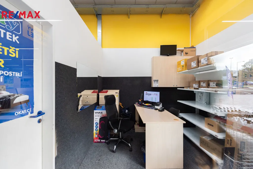 Nabízíme prodejní halu s parkovací plochou pro 50 vozů. Objekt, kolaudovaný v r. 2006 je rozdělen na dvě obchodní jednotky. První prodejna OKAY Elektro 1182 m², druhá prodejna Hafani 423 m². Zázemí pro zaměstnance 63 m² je společné, stejně tak i prostor pro příjem zboží 47 m² s roletovými vraty v zadní části budovy.