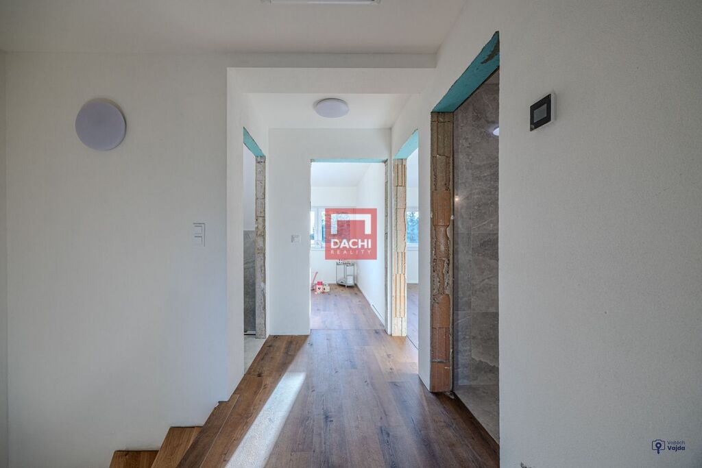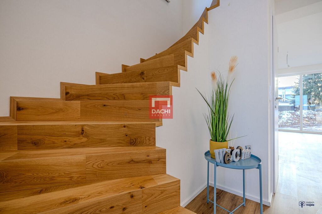 V přízemí domu najdeme velkorysou, prosvětlenou obývací zónu s kuch.koutem a jídelním koutem v budoucnu se vstupem na terasu nebo na zahradu. Dále je také v přízemí špajz, koupelna se sprchovým koutem a WC, technická místnost a praktická šatna. V 1. patře pak najdeme 2 samostatné neprůchozí pokoje, ložnici s pracovním koutem, relaxační koupelnu s vanou, samostatné WC. Možnosti rozšíření a zpřístupnění podkroví pro hernu, fitness nebo relaxační zónu. Podlahy budou pokryty vinylovou krytinou, která je nejen praktická, ale i estetická. Součástí kupní ceny je také kuchyňská linka včetně vestavěných spotřebičů, sanitární vybavení a obložkové dveře. V ceně je zahrnuto oplocení a zámková dlažba před domem. Nad rámec kupní ceny je možné dořešit pergolu, oplocení terasy, kryté parkovací stání pro auto, zabezpečovací systém, fotovoltaické panely s možností dotace nebo realizaci interiérů dle přání a nápadů budoucích majitelů. Dům je dokončený, zkolaudovaný a připravený k bydlení.