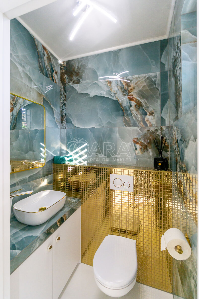 V přízemí domu je situována vstupní chodba, technická místnost, toaleta, šatna a prostorná kuchyně spojená s obývacím pokojem. V patře se nachází chodba, ze které se vstupuje do ložnice s šatnou a dětského pokoje, prostorné koupelny s rohovou vanou, bidetem a toaletou. Zdobné schodiště spojuje obě patra. Pohodlná terasa na předzahrádce poskytuje relaxační prostor pro odpočinek v klidném prostředí. Na zahrádce nechybí ani menší zahradní domek na uskladnění kol a sekačky.