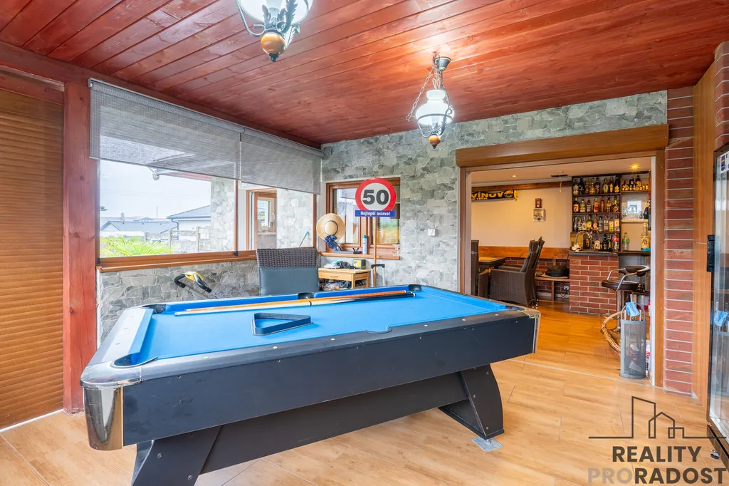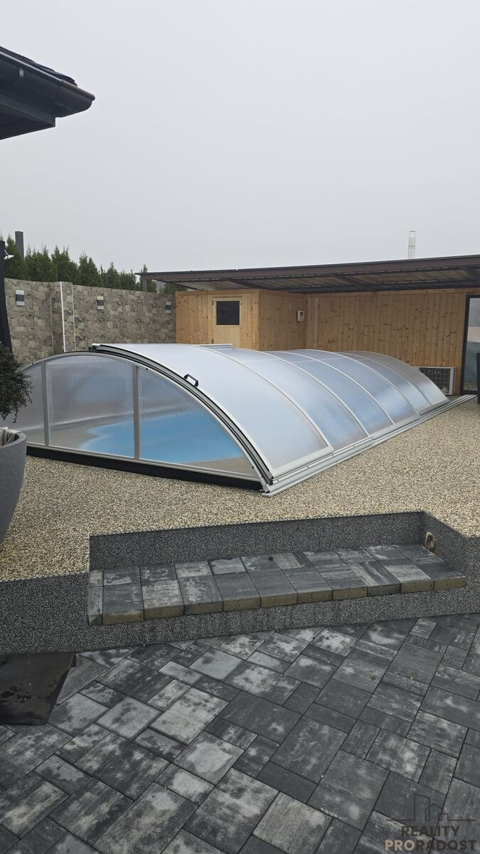 Další: v obývacím pokoji krb s rozvodem tepla do ložnic, kamerový systém, podlahové topení (voda), kotel plyn, klimatizace, oploceno, venkovní sauna, vnitřní infra sauna, zámková dlažba kolem celého domu + chodníčky, okrasná zeleň.