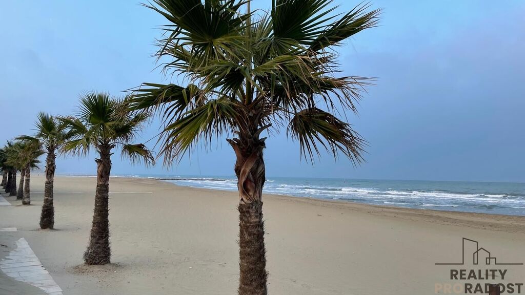 Apartmán o rozloze 75 m2 nabízí skvělou dispozici: prostorný obývací pokoj, samostatnou kuchyň, hlavní ložnici s manželskou postelí a druhou ložnici. Koupelna je prostorná a vybavena vanou. Hlavní obytný balkón poskytuje nádherný výhled na moře, zatímco druhý, menší balkon přístupný z ložnic nabízí klidné místo k relaxaci. Výhodou je vyhrazené parkovací místo.