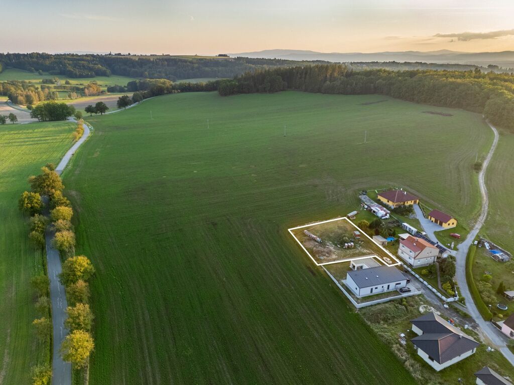 Stavební pozemek je územním plánem určen k výstavbě rodinného domu. Na hranici pozemku se nachází inženýrské sítě, přípojka el. energie, obecní vodovod a kanalizace, dále připravená příjezdová cesta a zarovnaný pozemek. Nachází se na okraji obce a zajišťuje naprosto jedinečný výhled na krajinu. Jedná se o místo k bydlení značky ideál - příroda, klid a vše potřebné na dosah.