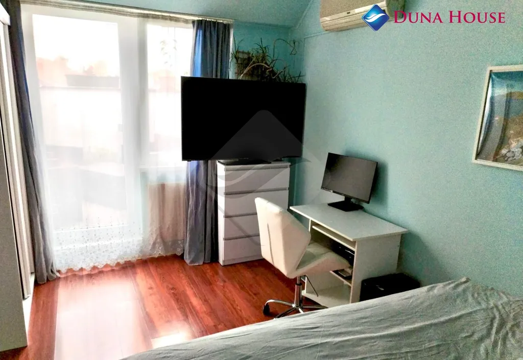 Tento útulný byt nabízí skvělé bydlení s vybavenou kuchyní a prostorným obývacím prostorem. Oceníte terasy o velikosti 10 m2, které poskytují skvělý výhled a možnost relaxace venku. K dispozici jsou sklady o velikosti 9 m2 pro další úložný prostor. Plovoucí podlahy, klimatizace, vytápění a ohřev teplé vody zajišťuje plynový kotel. Orientace bytu na západ a východ. Z chodby se vchází do dětského pokoje, obývací části s kuchyňským koutem a terasou, dále do koupelny, samostatného WC a technické místnosti. Mezonetová část bytu je tvořena šatnou a ložnicí se vchodem na terasu.