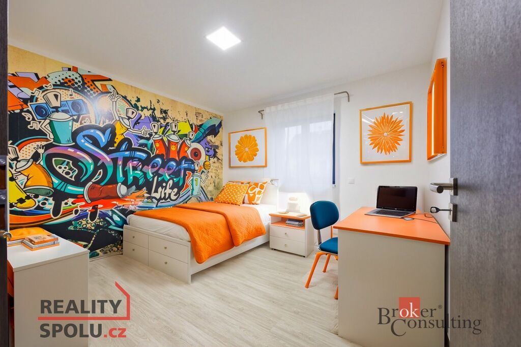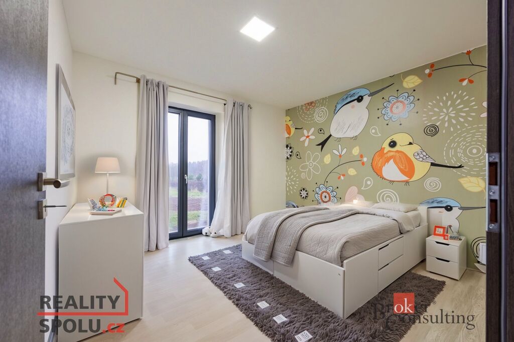 Dominantou interiéru je prostorný a světlý obývací pokoj s kuchyňským koutem o velikosti téměř 40 m², ze kterého vedou francouzská okna přímo na terasu a do zahrady. Kuchyň je doplněna praktickou spíží. Dům dále nabízí čtyři samostatné pokoje, dvě koupelny, samostatné WC, technickou místnost a zádveří s možností vestavěných úložných prostor. Hlavní ložnice disponuje velkými okny s výhledem do zahrady.