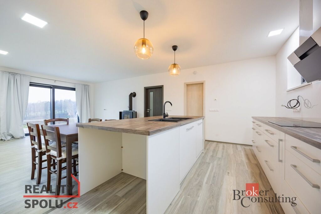 Dům je připraven k okamžitému nastěhování a představuje výjimečnou příležitost pro ty, kteří hledají moderní bydlení v přírodě s rychlým dosahem do města.