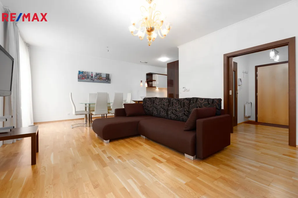 Byt je prostorný a světlý, zároveň působí velmi útulně. Obývací pokoj je spojený s kuchyňskou linkou, která je vybavena vestavěnými spotřebiči, pro maximální komfort. Byt disponuje prostornou a světlou ložnicí, která je vybavena vlastní koupelnou. Velké plus shledáváme i v podobě 2 parkovacích míst.