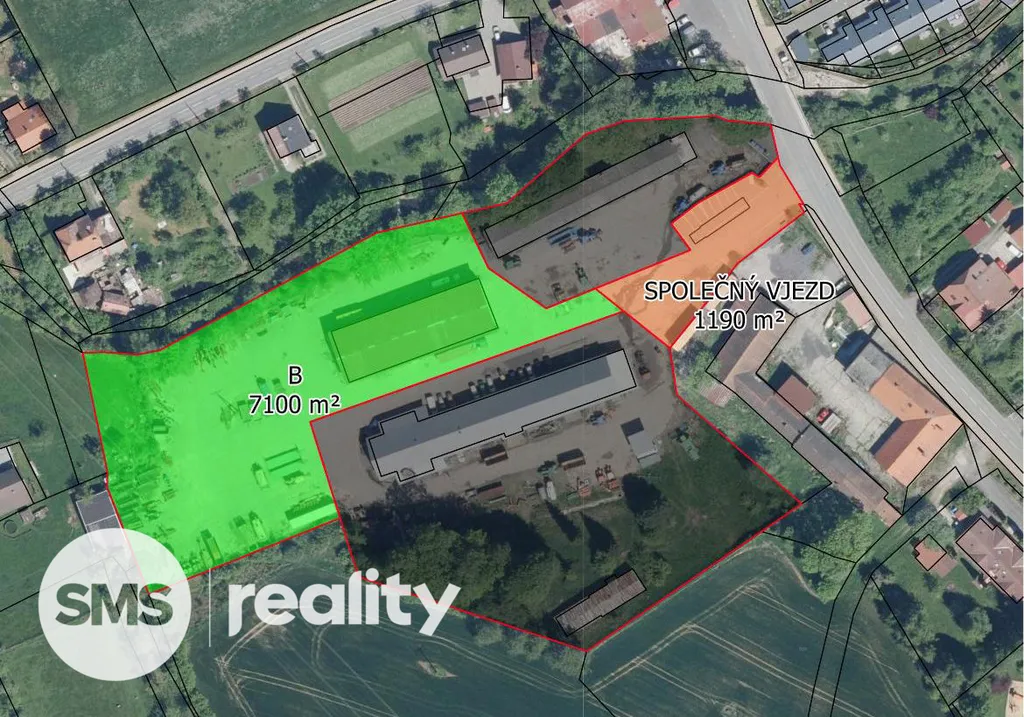 Areál lze koupit i celý či různou kombinaci částí objektu, kde společný vjezd s parkovištěm je součástí a bude rozdělen idálním podílem.