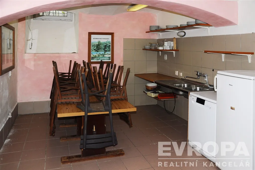 Suterén: kuchyň pro hosty (lednice, mikrovlnná trouba, varná konvice, sporák a další vybavení, 2x klubovna s TV.
