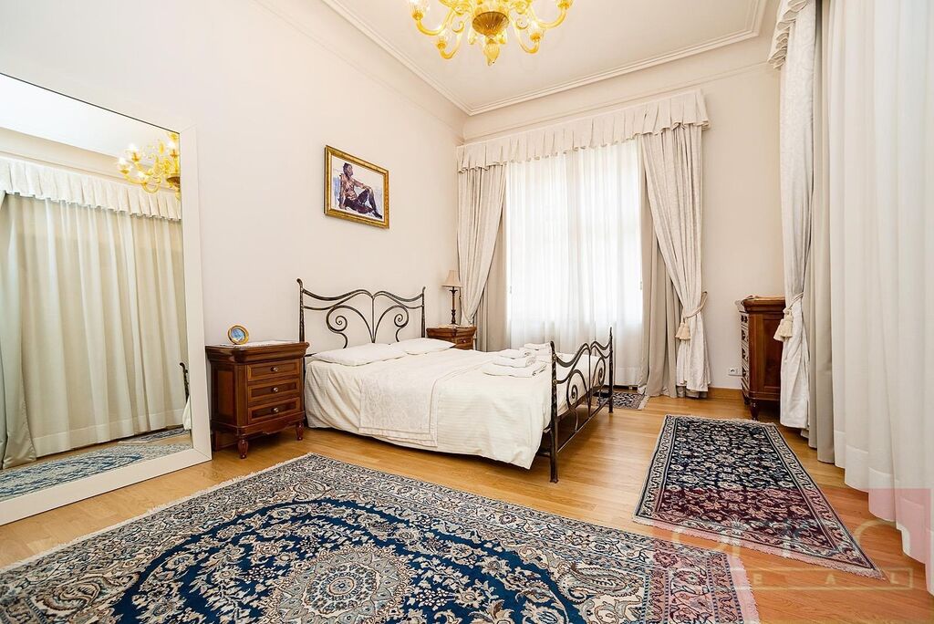 Nabízíme k pronájmu nadstandardně zařízený byt 4+kk s celkovou plochou 120 m2 v 1. patře zrekonstruovaného činžovního domu s výtahem v klidné ulici v centru Prahy 1 - Nové Město pár kroků od Náměstí republiky. u nákupního centra Palladium. Stylově zařízený byt nabízí vstupní chodbu, obývací pokoj, plně vybavenou kuchyň, 2-3 ložnice - jednu s vlastní koupelnou s vanou a toaletou, druhou koupelnu se sprchovým koutem, toaletou a bidetem. K vybavení bytu patří dřevěné parkety a dlažba, klimatizace, je vybaven ve vysokém standardu včetně nádobí a ručníků. V lokalitě je veškerá občanská vybavenost, restaurace, kavárny, obchody, nedaleko je park Letná. Pár minut pěšky ke stanice metra a tramvají Náměstí Republiky.