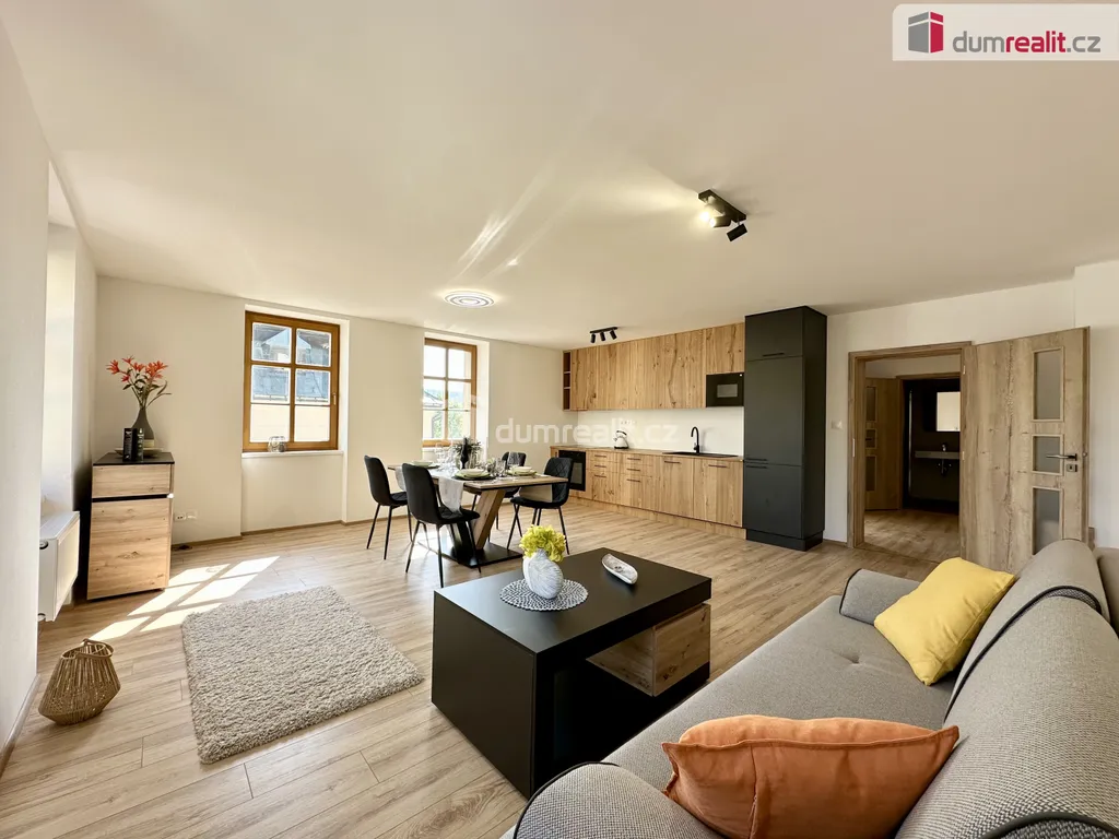 Dumrealit.cz Vám zprostředkuje prodej apartmánů na náměstí Sv. Vavřince v Horní Blatné, které se nachází v blízkosti několika lyžařských areálů jako je Plešivec, Potůčky nebo Klínovec. Apartmán číslo 3. se nachází v prvním patře, je o velikosti 69 m² s orientací na jižní stranu a s výhledem do přírody. Dispozice bytu 2+KK. Všechny apartmány jsou vybaveny sanitární keramikou v koupelnách, sprchovým koutem Walk-in, podlahovou krytinou a to v kombinaci velkoformátové dlažby a plovoucí podlahy v dekoru dřeva, obložkami, interiérovými a vstupními dveřmi a kompletní přípravou na osazení kuchyňské linky. Ke každému apartmánu patří jedno soukromé parkovací místo hned u domu a jedna sklepní kóje, vše je již započítáno v uvedené ceně. Součástí jsou také nádherné společné prostory a to včetně sklepního prostoru s možností posezení. Vytápění apartmánů je elektrické s dálkovým ovládáním s připojením na Wi-Fi. V apartmánovém domě se nachází 12 jednotek od 1+KK až po 3+KK různých podlahových výměr. Několik apartmánů je již prodáno. Izolant obvodových stěn 16-18cm polystyrenové dílce a 28cm minerální vlna v podkrovní části domu. Nemovitost se nachází přímo na náměstí s výhledem na hory a kostel Sv. Vavřince. Koupě apartmánu je ideální také jako investice, kdy jsou Krušné hory celoročně navštěvovány turisty a Horní Blatná patří svým umístěním mezi nejvíce vyhledávané. V blízkosti apartmánu se nachází Blatenský vrch, Vlčí jámy a mnoho turistických a cyklo tras. Nemovitost s možností odpočtu DPH z uvedené kupní ceny. Doporučuji nezávaznou prohlídku objektu s možností vybrat si právě ten VÁŠ apartmán. Uvedené fotografie s jíž osazenou kuchyňskou linkou a vybavením jsou z referenčního bytu č. 10. Ev. číslo: 649379.