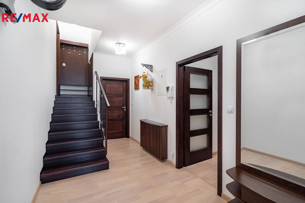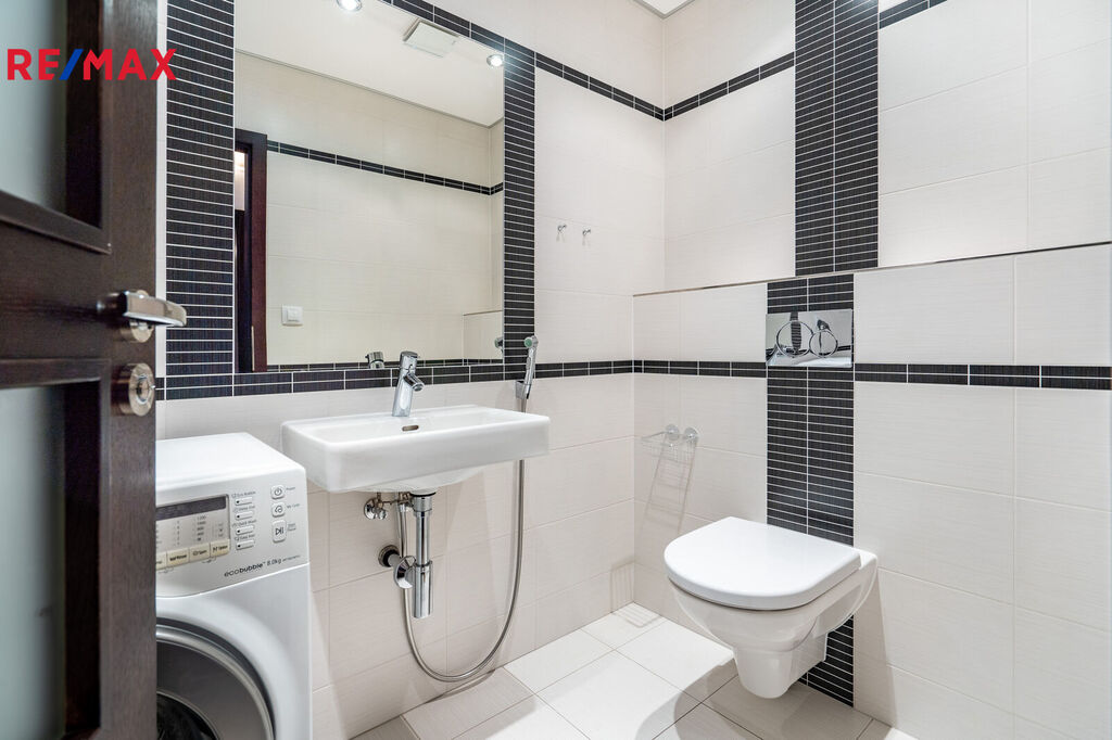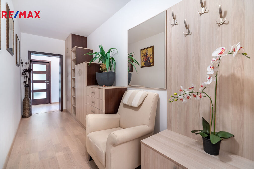 Předsíň disponuje dostatkem prostoru pro úložné řešení i volný pohyb. Byt má také samostatnou toaletu pro hosty, což přispívá k pohodlí celé domácnosti. K dispozici je výtah a možnost pronájmu parkovacího stání v garážích přímo v domě. Vše bylo navrženo tak, aby váš životní prostor byl co nejkomfortnější a praktický.