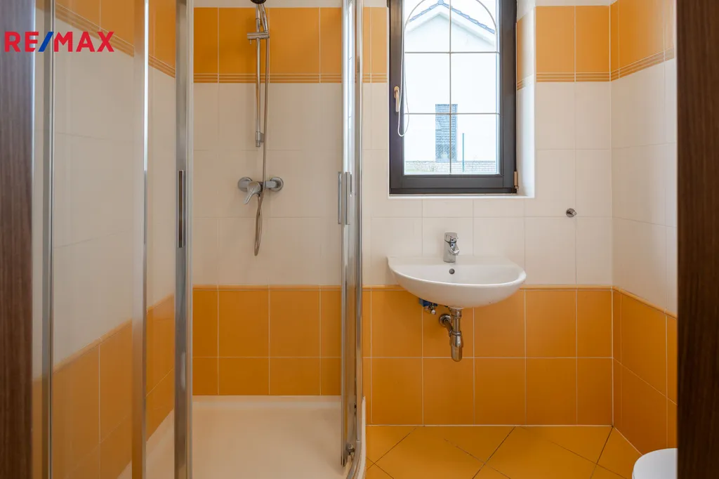 V přízemí najdete prostorný obývací pokoj s kuchyňským koutem, který je propojený se zahradou díky dvěma velkým francouzským oknům. Součástí přízemí je také jeden pokoj, předsíň, praktická komora a koupelna se sprchovým koutem.