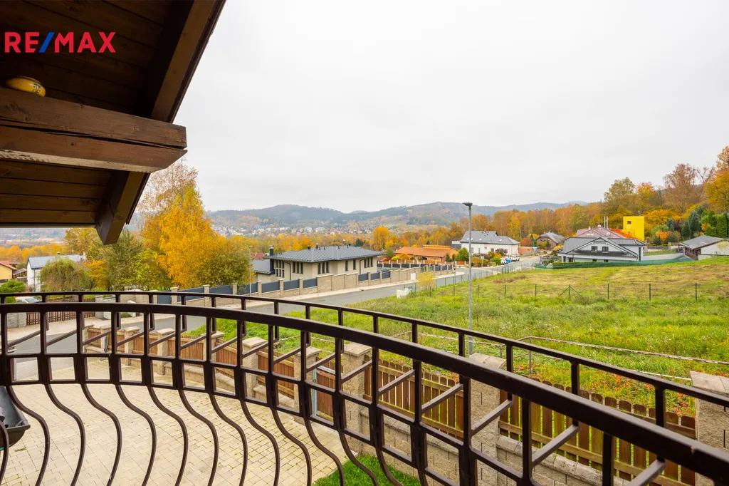 V prvním patře jsou tři další pokoje. Hlavní ložnice disponuje vlastní koupelnou a balkónem, který nabízí nádherný výhled na okolní krajinu. Pro pohodlí celé rodiny je zde navíc druhá koupelna.
