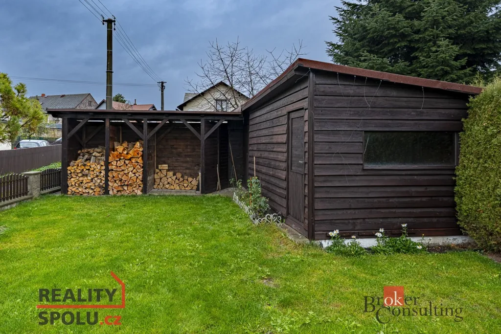 K domu náleží rovinatá a udržovaná zahrada. K dispozici budete mít praktickou garáž, která může sloužit také jako dílna nebo sklad na nářadí a zahradní techniku. Před garáží je parkovací místo. Mezi domem a garáží je útulná terasa s venkovním grilem – skvělé místo pro příjemné večery s rodinou nebo přáteli. Na druhé straně zahrady je velký dřevník a dílna.