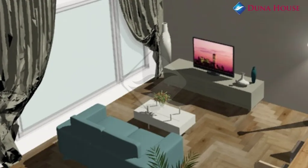Vizualizace je pouze ilustrační. Jednotka nebude vybavena nábytkem, pouze sanitou v koupelně.