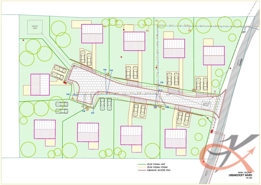 Pozemek je přístupný po obecní asfaltové komunikaci a nabízí připravené inženýrské sítě (vodovod, kanalizace, elektřina a veřejné osvětlení) na hranici pozemku.