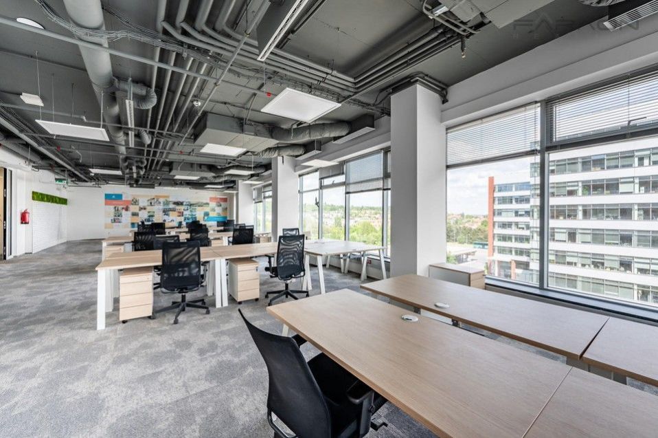 Pronájem exkluzivních světlých kancelářských prostor (173m2) s krásným výhledem na Prahu v 5. patře s možností parkování v podzemních garážích (536 míst) budovy "D" administrativního komplexu Coral Office Park v těsné blízkosti stanice metra B - "Nové Butovice".