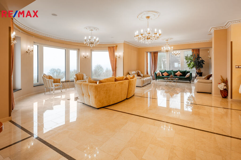 Každý detail tohoto domu byl promyšlen tak, aby z něj vyzařovala elegance a funkčnost. Celý interiér propojuje honosné mramorové schodiště, jehož elegantní linie a řecká kupole nad ním dodávají domu jedinečnou atmosféru a pocit vzdušnosti.