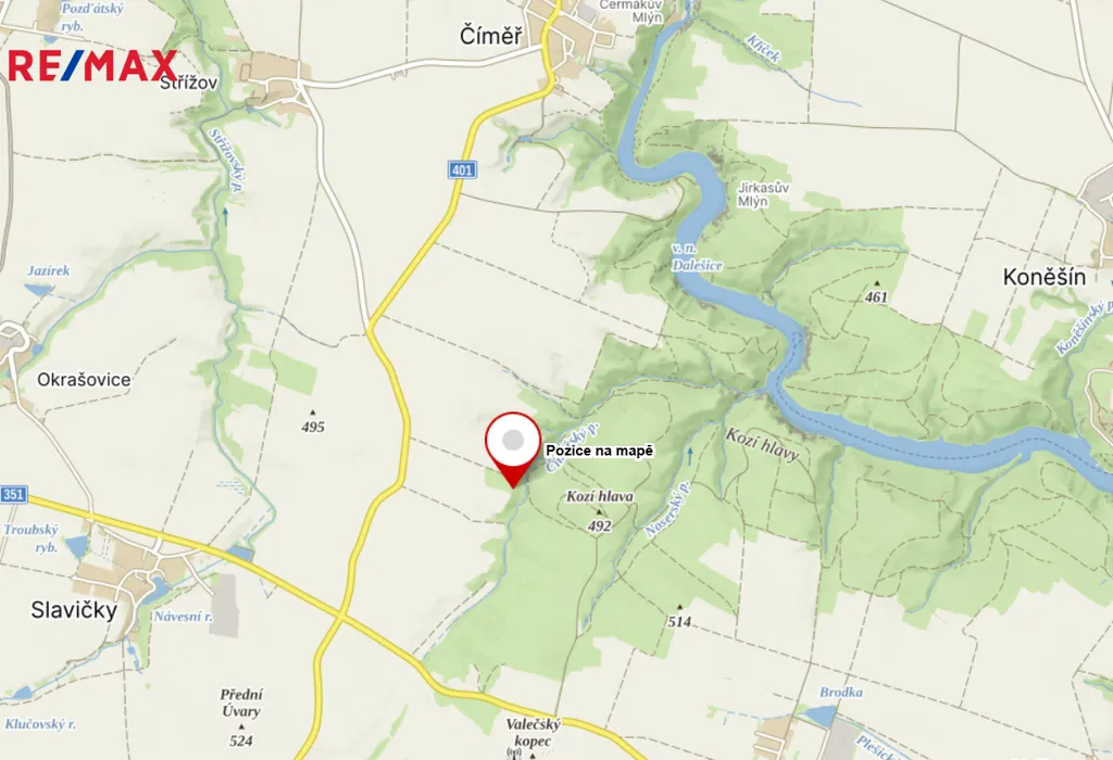 Jedná se celkem o 12 parcel, které spolu vzájemně sousedí a tvoří tak souvislý celek. Nachází se v mírné svahu u Číměřského potoka. K pozemku vede obecní komunikace (polní cesta). Pozemky jsou aktuálně ve stavu před osázením. Většina pozemků je vytěžena, aktuálně s porostem keřů a několika modříny viz foto. Je možné jednat o prodeji na části.
