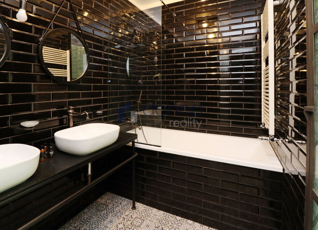 ze dvou samostatných ložnic. Byt má dvě koupelny – každá je vybavena vanou, v jedné je navíc sprchový kout, obě mají oddělené toalety s bidetem.