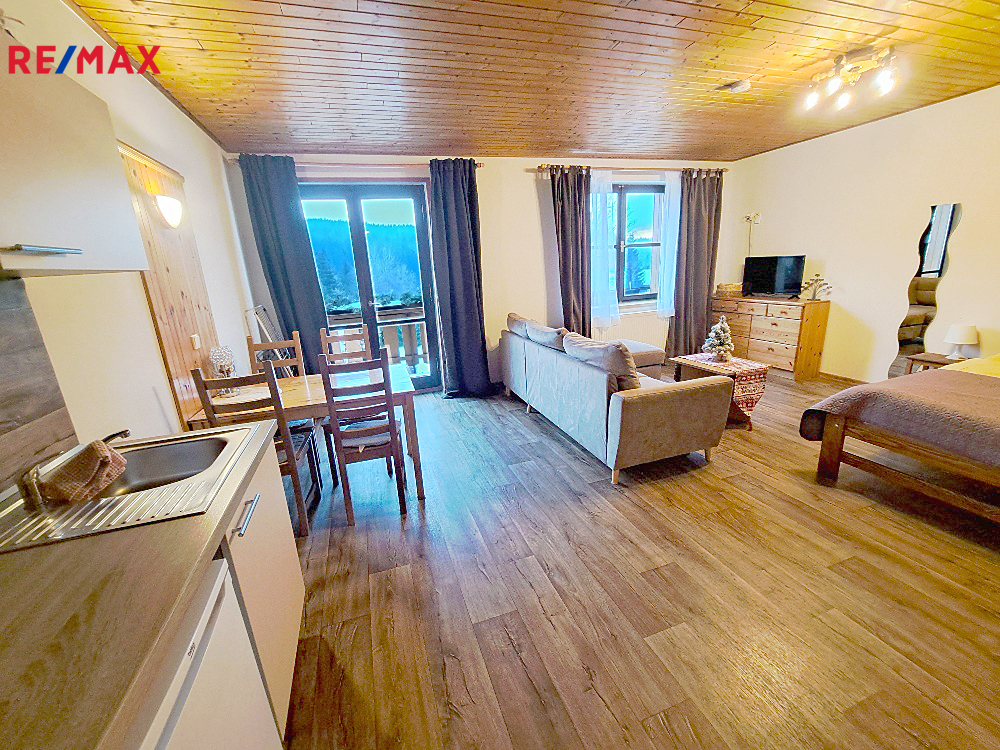 Nabízíme Vám k dlouhodobému pronájmu plně vybavený prostorný apartmánový byt v samotném srdci Harrachova, byt se nachází na hlavní harrachovské třídě. Přímo z apartmánu je úchvatný výhled na Černou horu a její sjezdové tratě včetně můstků. Celková výměra bytu je 38 m2, z čehož 3,5 m2 tvoří balkón.