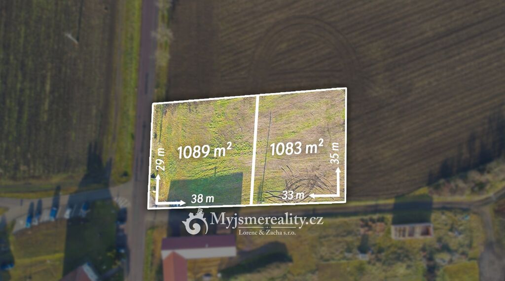 2/ pozemek o celkové výměře 1.083 m2, rozměr pozemku 33 x 35 metrů